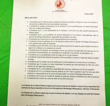 Le 25 mars 2018, nous étions six femmes de La Marie Debout aux côtés d’une vingtaine d’autres personnes à la sixième mobilisation organisée par Carole Poirier, notre députée. Elle invite la population à signer la carte postale déposée dans les boîtes à lettres du quartier, réclamant plus de médecins. Aura-t-elle gain de cause? Le ministre Barrette nous entendra-t-il une bonne fois pour toutes!?!